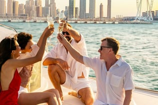 카나페와 무제한 음료가 있는 두바이 마리나 요트 파티