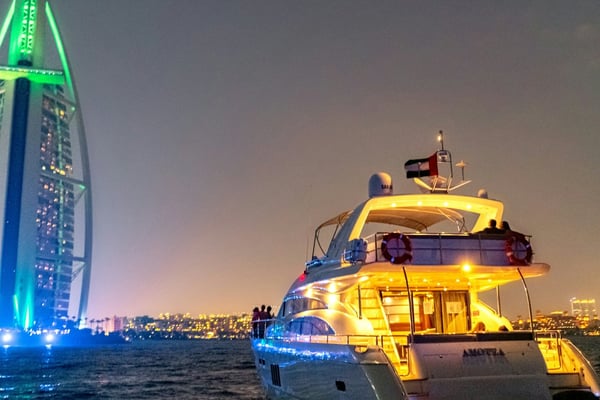 가이드와 함께하는 럭셔리 요트 투어로 두바이의 아름다운 해안선을 둘러보세요.