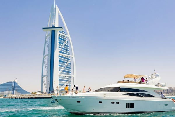 가이드와 함께하는 럭셔리 요트 투어로 두바이의 아름다운 해안선을 둘러보세요.