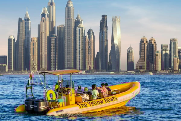 옐로우 보트: 99분 프리미엄 보트 투어 - 팜, 부르즈 알 아랍, 두바이 마리나