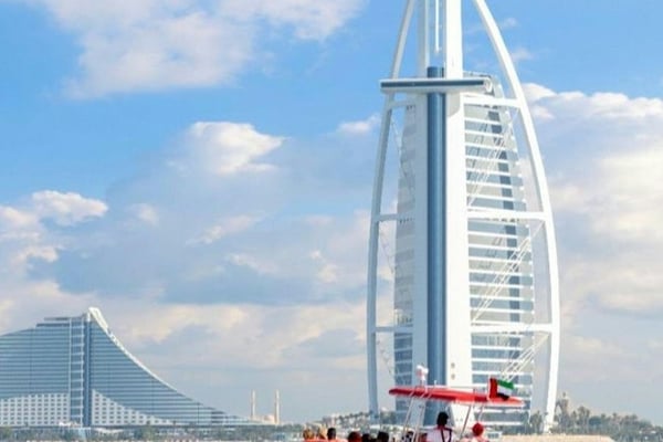 두바이 최고의 명소를 둘러보는 스릴 넘치는 100분 보트 투어!