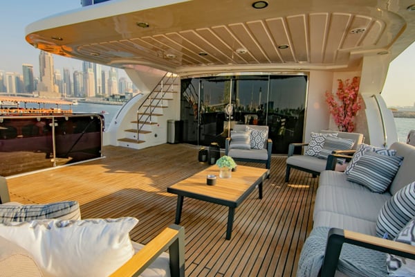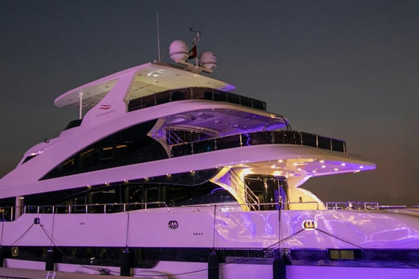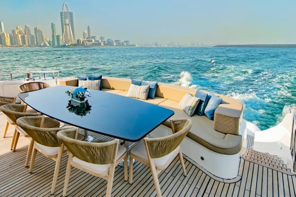 두바이를 조망할 수 있는 럭셔리 슈퍼요트에서 셰프가 만든 뷔페를 즐겨보세요