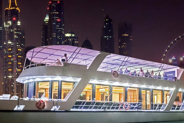 라이브 음악과 디너 뷔페를 즐기며 90분 동안 5성급 럭셔리 크루즈를 즐겨보세요