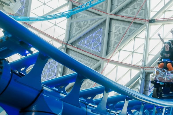 초고속으로 두바이 힐스 몰의 벽을 나선형으로 둘러보세요