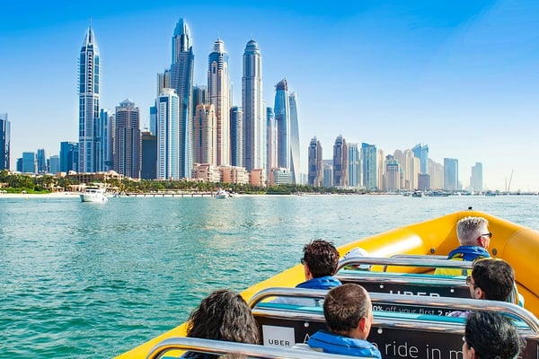 두바이의 유명한 해변을 둘러보는 보트 투어